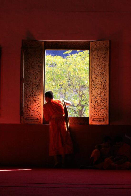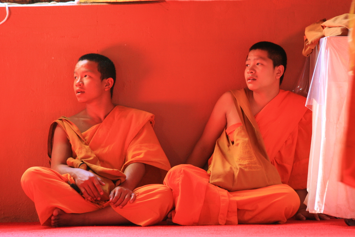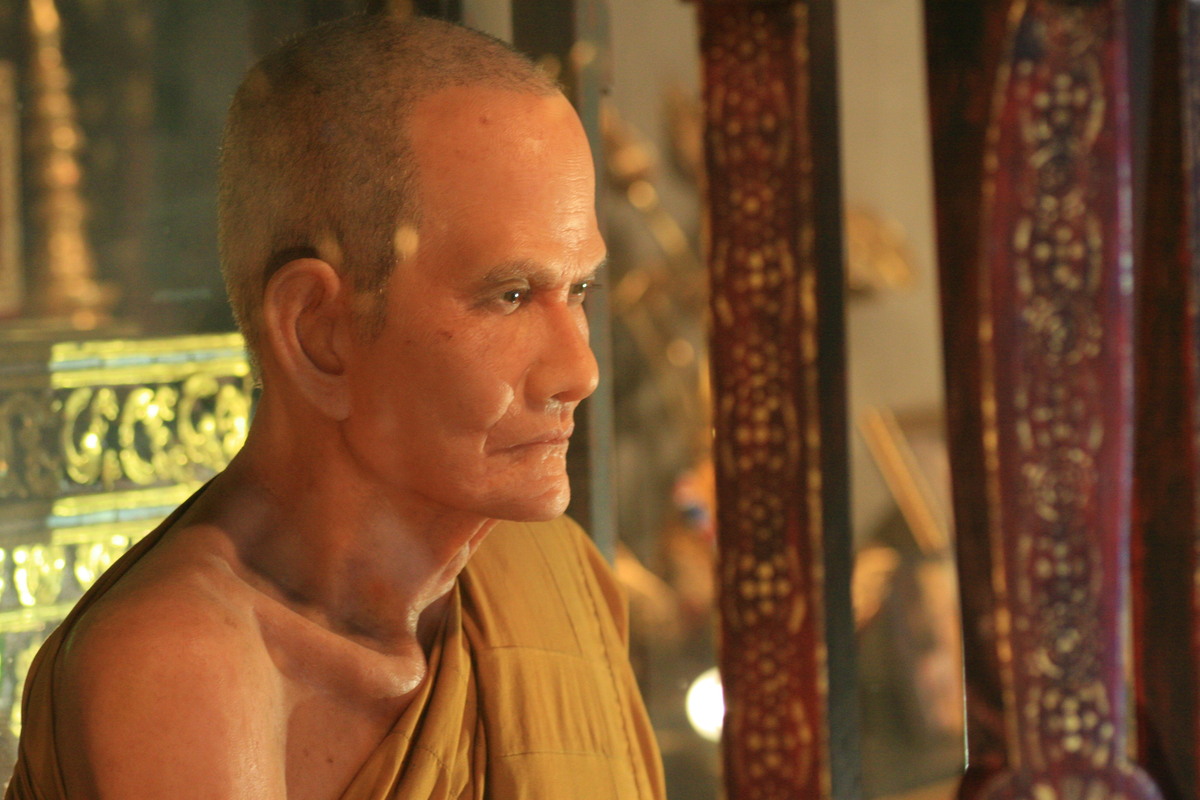 Ja, wirklich, die machen hier von Ihren Lieblingsmoenchen Wachsfiguren und setzen die dann in einen Glaskasten im Wat. Da sitzt er dann und sieht…