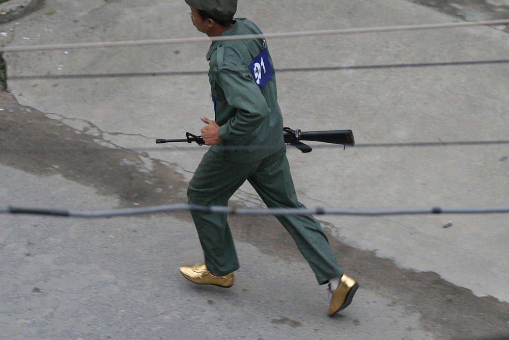 Als wir am Freitag morgen vom Balkon sahen, hatten wir kurz das Gefühl, der Vietcong würde mit bewaffneten Truppen in die Stadt einmarschieren. Grüne Soldaten mit Kalaschnikows rannten die Straße entlang...