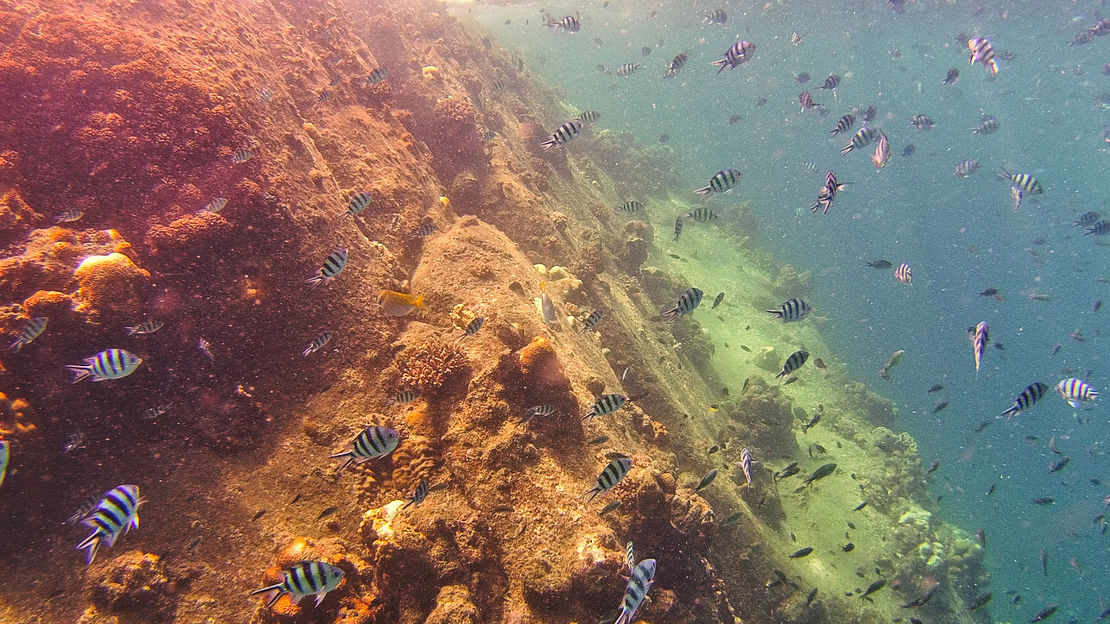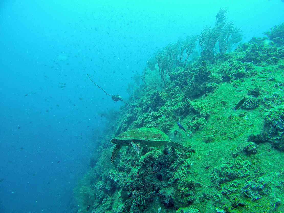 Man könnte meinen, der Sensor meiner Kamera ist kaputt, aber es gibt leider praktisch kein rotes Licht mehr in 19m Tiefe, es sei denn, man bringt welches mit. Wir hatten zwei schöne Dives heute, an…