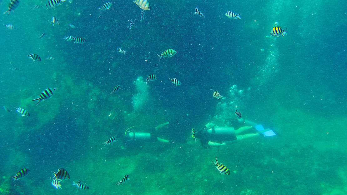 Wir hatten etwas Glück bei unseren beiden Fun-Dives heute und…