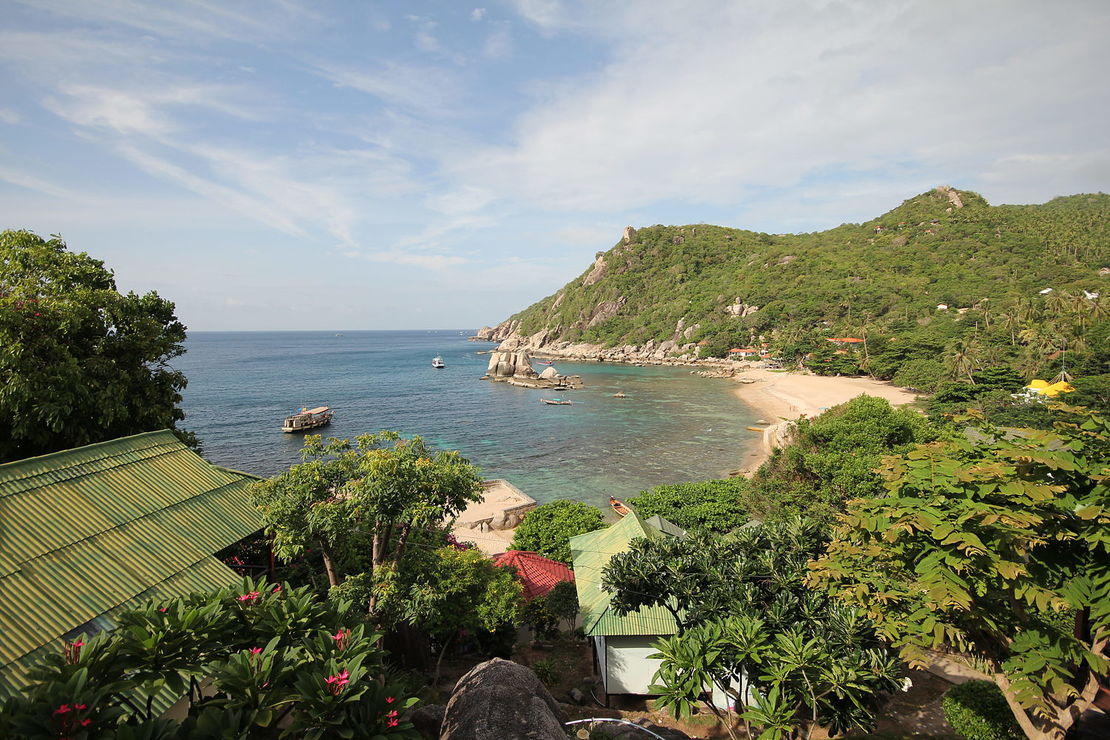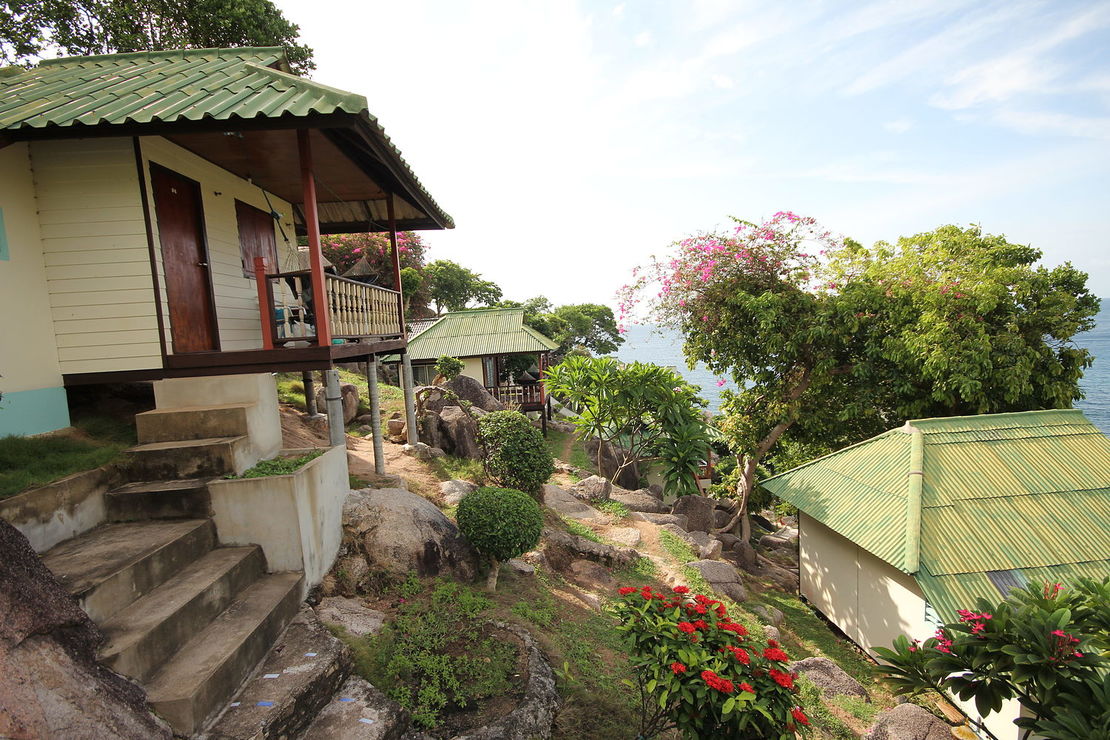 @homeWW: Es gibt ein Restaurant, eine überdachte Terrasse mit flachen Tischen und Thai-Liegekissen. Kann man gut abhängen. In der Bucht sind etwa 4 »Resorts« mit unterschiedlich ausgestatteten Hütten. Wir haben die einfachste Variante mit Ventilator und kalter Dusche. Unser Teil heißt Family Tanote Bay.