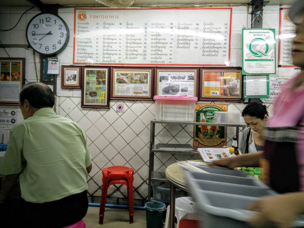 Dann gings wieder mit dem Skytrain nach Bang Rak (den Stadtteil, in dem wir wohnen), um ein legendäres Roasted-Duck-Restaurant auszuprobieren. Von außen sah es nicht anders aus als viele dieser fenster- und schmucklosen Minirestaurants. Von drinnen auch nicht, alles sehr improvisiert und ohne schnickschnack, aber sehr freundlich. Die Ente war gut, die Portionen nur etwas klein. Aber man kann ja noch eine Portion nachordern. Dazu gabs ein paar Wantans mit rotem Schweinefleisch und klare Suppe. Die zufriedene satte Familie verlies den Laden mit einer Rechnung von 226 Baht, ganzen 6 EUR!