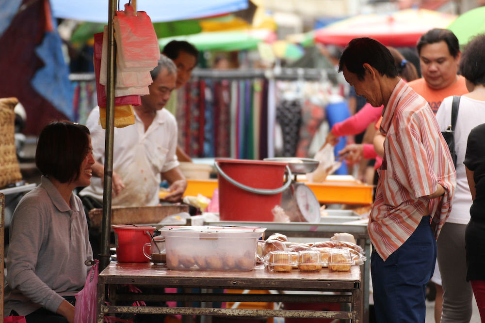 Zum Frühstück war Stromausfall, angeblich auf der halben Insel. Die Hotelleute versicherten, dass das seit Jahren nicht mehr vorgekommen ist. Also gab es keinen Toast, sondern etwas Kuchen und Pfannkuchen vom Buffet. Der tiefschwarze Kaffee war noch warm von der Zeit mit Strom. Wir sind dann durch Chinatown, um dahinter in der größten Einkaufsmall der Stadt Kopfhöhrer-Ersatz für den Welpen zu besorgen und weil der kleine Hund mal wieder einen echten Latte Macchiatio von Starbucks wollte. Netterweise ging unser Weg durch einen schön wuseligen Straßenmarkt und einer Fischverkaufshalle vorbei. Sobald der Welpe seine Kamera zückte, präsentierten die Verkäufer sofort ihre beste Ware und posierten vor der Kamera. Natürlich hatte der Welpe aber nur Blick für die Ware, nicht die Verkäufer. Ihr wurden Haie gezeigt, riesige Wrassen(?), lebende Hühner aus Kisten geholt, lebende Pfeilschwanzkrebse über die Straße laufen gelassen, einfach alles. Und alle freuten sich. Der Welpe erst recht.