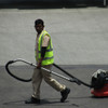 Nach einem Check wie im Flughafen im klimatisierten Zelt, mussten wir ein wenig auf dem Gelände gerumlaufen, um für die total unpassend gekleideten Damen je einem Hufflepuff-Mantel auszuleihen. Solche Sachen erledigt man dort unterirdisch, immer schön klimatisiert. Die riesige Tiefgarage der Moschee, durch die man seltsamerweise auch durch muss, ist allerdings eher backofenartig.