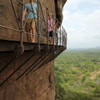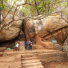 Frühmorgens gegen halb acht sind wir am Eingang gewesen und wanderten im Morgenlicht durch einen unerwartet großen Garten mit geometrischen Wasserbecken, Grundmauern, Treppen, alles in Bergnähe mit teilweise riesigen, runden Felsbrocken übersäht. Dieses Ensemble wäre schon eine Besichtigung wert. Dann beginnt über viele unterschiedliche Stein- und Metall-Treppen, Galerien und kleinen Brücken der wirkliche Aufstieg auf den Felsen. Wieder kachelte uns ein strammer Wind um die Ohren, so dass wir uns nichtmal trauten, eine Sonnenbrille aufzusetzen. Was ist das überhaupt mit dem Wind hier in Sri Lanka, ist das normal?