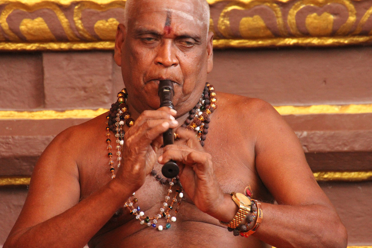 Vor dem Tempel spielte z.B. eine Dreierkombo aus Tabla, Flöte und Orgel, vor allem der Flötenspieler war unglaublich schlecht und überblies die Flöte die ganze Zeit, so dass immer nur der gleiche Fiepton rauskam (also exakt so wie wenn ich Flöte spiele), das schien aber nichtmal seine Mitspieler zu stören, die deutlich besser waren.
