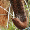 Zum Abschluss gab es nochmal einen Snack für die Elefantin, deren Namen wir uns nicht merken konnten und sie daher immer nur Marie-Louise genannt haben. Sie durfte sich von einem Baum nahe der Straße ein paar der Bewohnerin lästige Äste abbrechen und mitnehmen. Da hat sie nicht lange gezögert und hat kurz mit dem Rüssel gezogen und schon waren die Äste ab. Am Futterplatz wurden dann dort säuberlich und elegant die Blätter und Rinde abgezogen und verspeist.