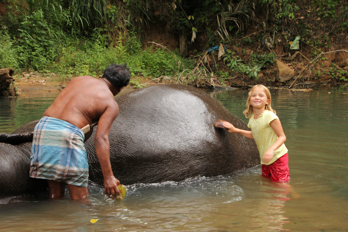 Das ganze war insgesamt eine ganz nette Angelegenheit, vor allem, weil wir in einer kleinen Gruppe von 6 Leuten alles gemacht haben (und nicht als Msssenbespaßung im großen Elephant Orphanage in der Nähe), aber es war auch ziemlich teuer und wir vermissten mehr Infos über die Tiere und ihr Leben. Schön war es, Marie-Louise beim Waschen mal ganz nahe zu kommen, das wäre beim anderen, heute abwesenden Elefanten aber wohl noch deutlich besser möglich gewesen.