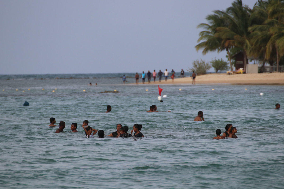 Wir haben uns in einem der Resorts für morgen einen Tauchgang organisiert, auf einem Liegestuhl unter einem Klischee-Palmwedelsonnenschirm gelegen, ein wenig im sehr warmen Wasser gebadet, einen kleinen Snack in einer anderen Strandbar genommen (leicht besser). Der Welpe wurde mal wieder fotografiert (zusammen mit ein paar sehr blonden englischen Mädeln) und wurde von hiesigen Kindern im Wasser angesprochen.