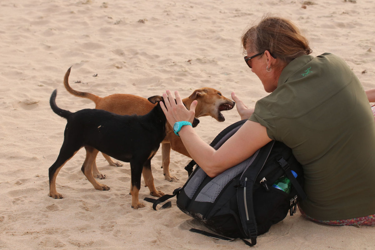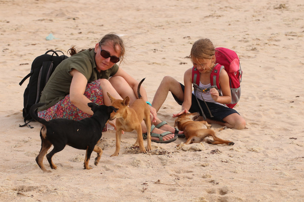 Vor allem der Welpe wurde schnell von drei freundlichen Hundewelpen »angegriffen«, die mit ihr toben wollten und versuchten, ihre Sandalen zu klauen. Als wir zu langweilig wurden, wurden dann wieder die Kühe angebellt, die hier vereinzelt über den Strand laufen. Insgesamt ein deutlich netteres Stück Strand. Mal sehen, wann das auch zugebaut wird …