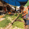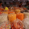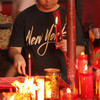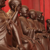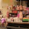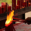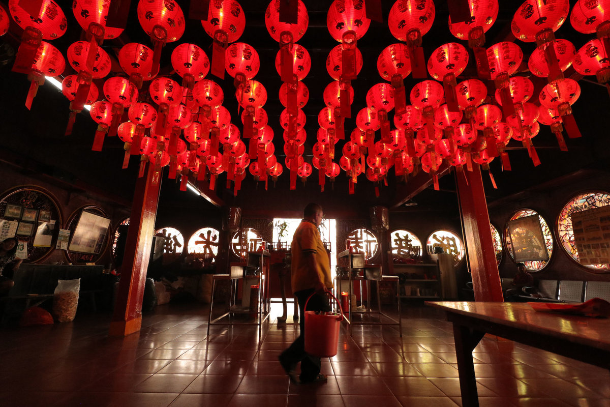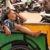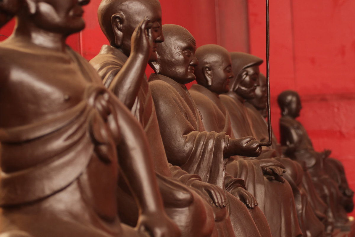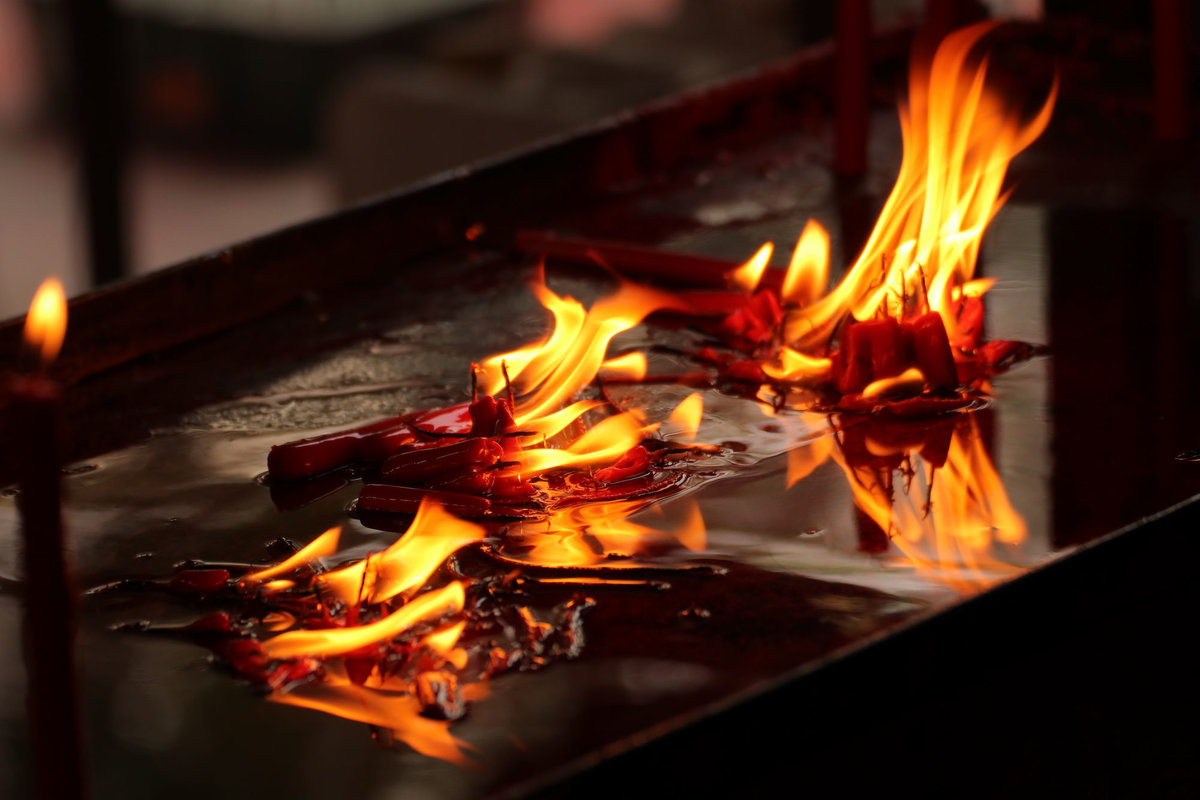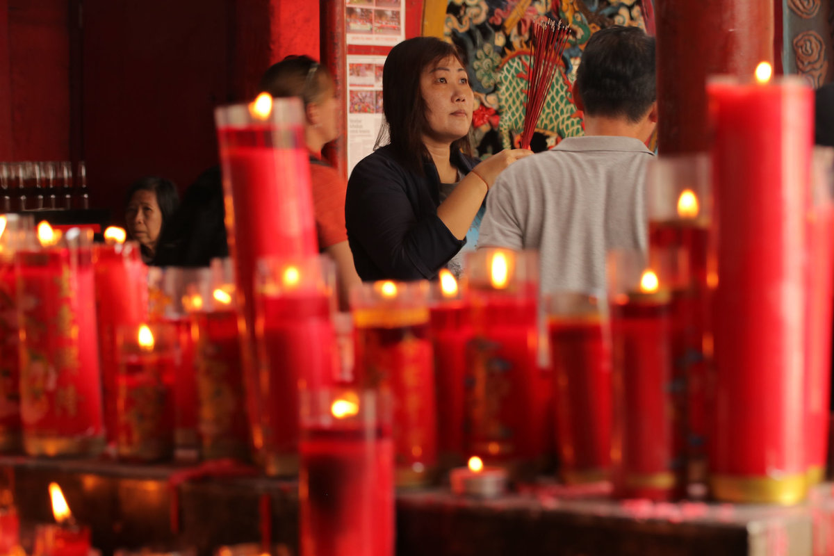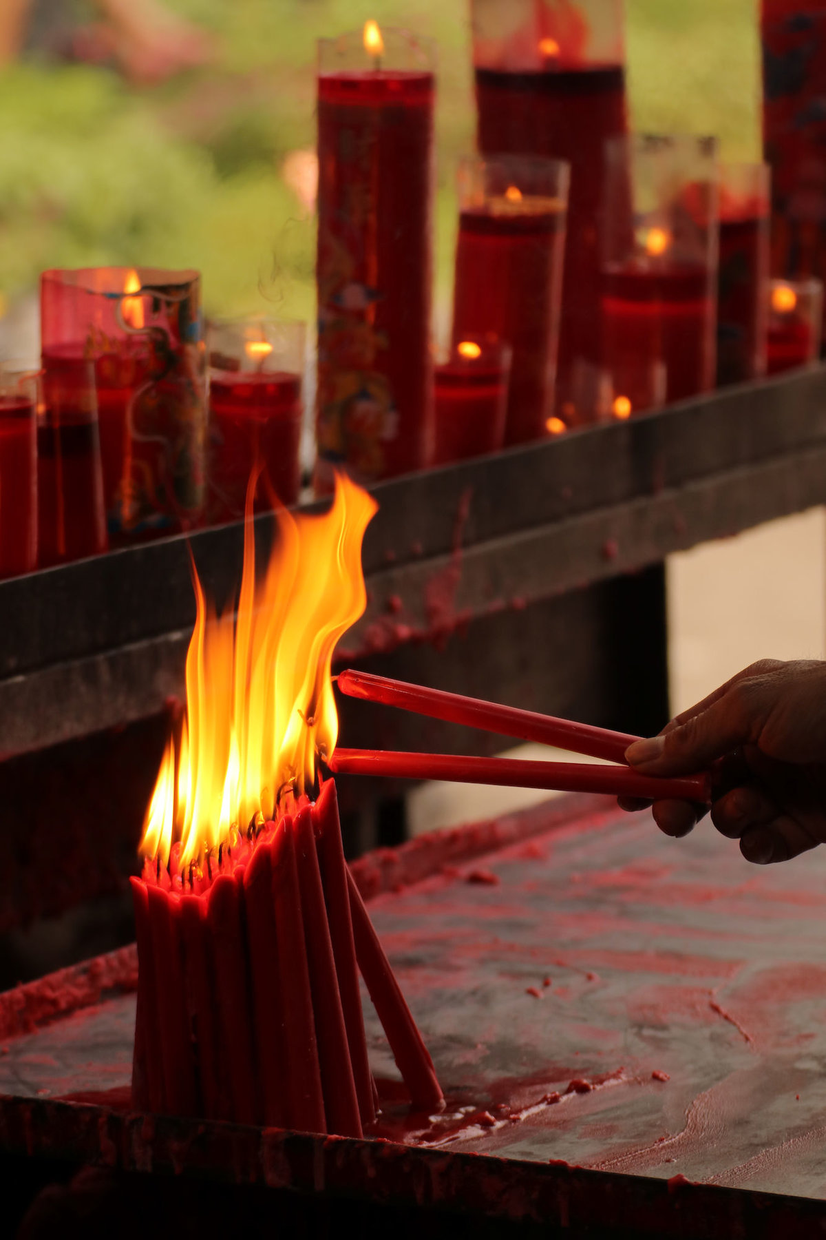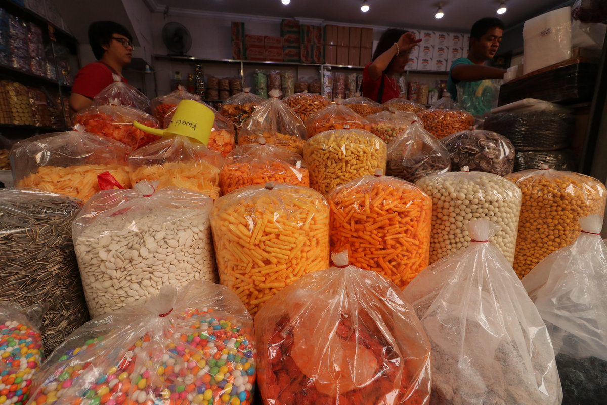 13.7.2018, Jakarta. Der Vorsatz, früher aufzustehen, hat exakt bis zum Weckerklingeln gehalten. Wir sind aber trotzdem noch zu akzeptabler Zeit mit einem Grab-Teksi Richtung Chinatown aufgebrochen. Nur leider hat der Verkehr die veranschlagten 20 Minuten zu etwa dem Doppelten anwachsen lassen. Der Dauerstau auf den größeren Straßen hat unseren Fahrer bewogen, auf die labyrinthischen kleinen Straßen auszuweichen, die so schmal sind, dass sie sich naturgemäß nur in einer Richtung befahren lassen, aber trotzdem in beiden Richtungen befahren werden, was zu ständigem Rangieren, Wenden und Umwegefahren führt. Irgendwann haben wir dann dem Fahrer gesagt, er soll es bleiben lassen, wir würden den Rest zu Fuß gehen, worüber dieser ziemlich erleichtert schien. Das war auch keine schlechte Maßnahme, denn die kleine Gasse zum Chinesischen Buddhistischen Tempel entpuppte sich als interessante Chinatown-Einkaufszone mit einem breiten Angebot an Kröten, Gemüse, Mollusken, Schreibblöcken, Süßigkeiten und Fußmatten. Der Tempel war recht schmucklos und pragmatisch, wurde aber rege von Leuten zum Vollräuchern genutzt. Wieder wurden die Räucherstäbchen, die man zuhause vielleicht mal einzeln anzündet, in fetten Bündeln abgeraucht. Desgleichen wird hier auch mit Kerzen verfahren – sofern man nicht gleich die XXXXXL-Variante verwendet, die ca. 50cm Durchmesser hat. Der Welpe war ob der Feinstaubbelastung not amused.