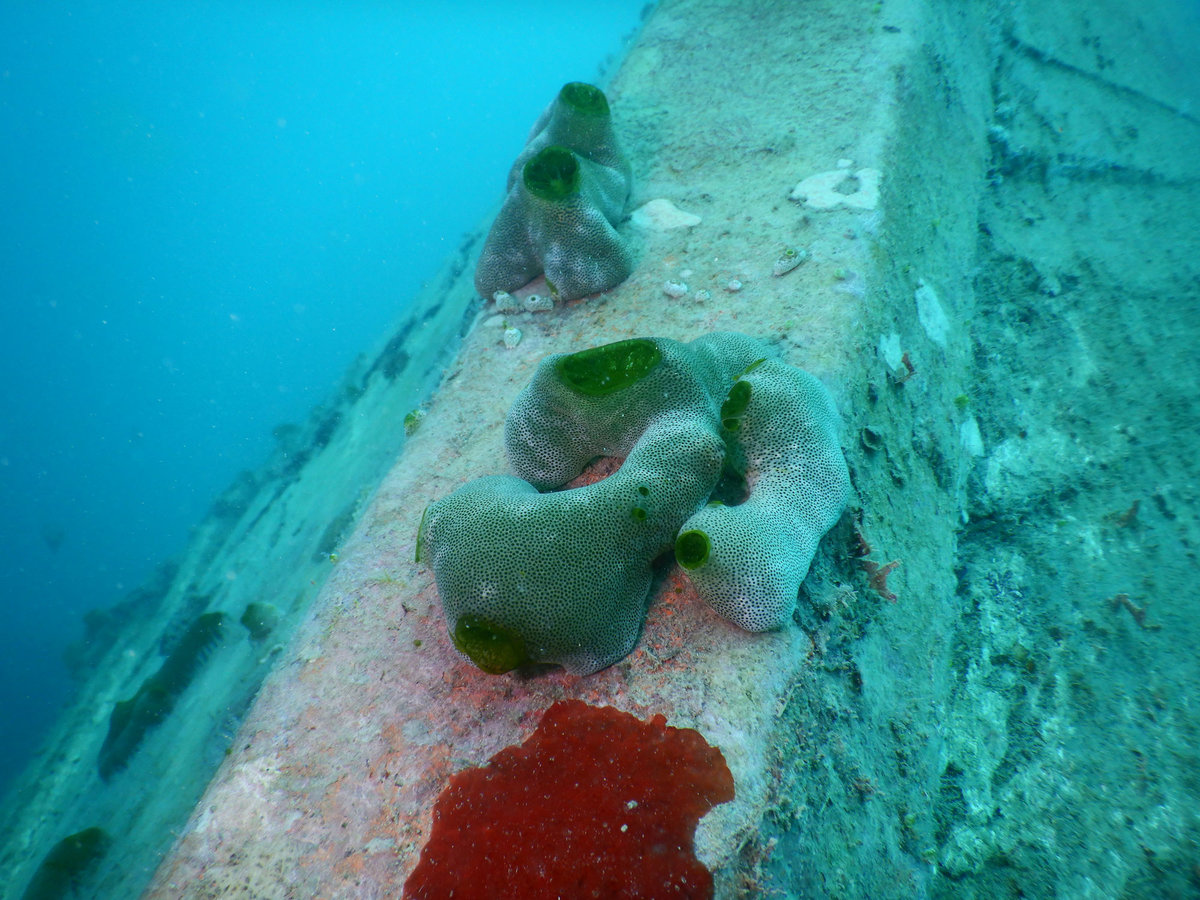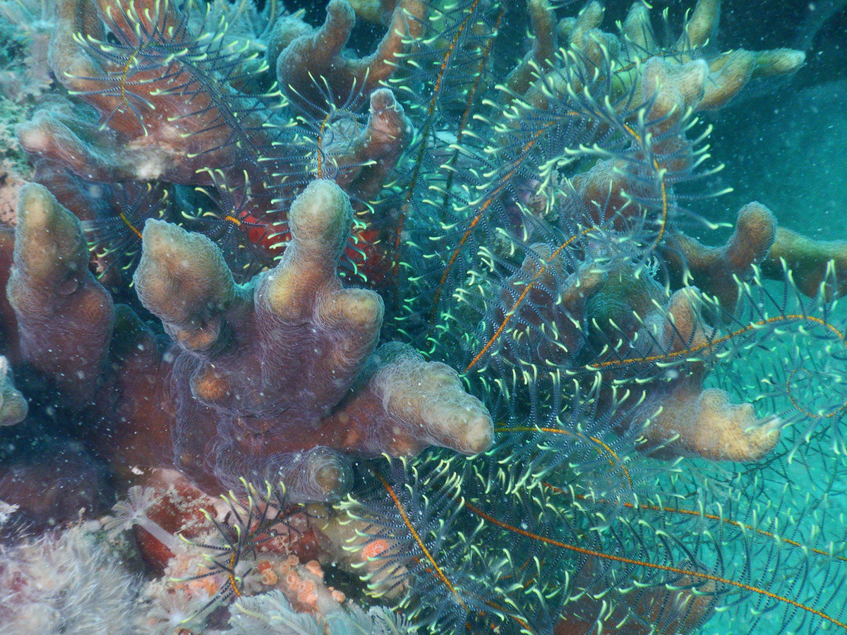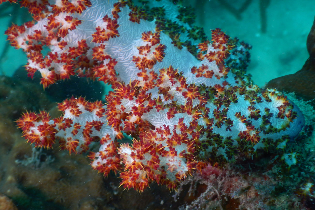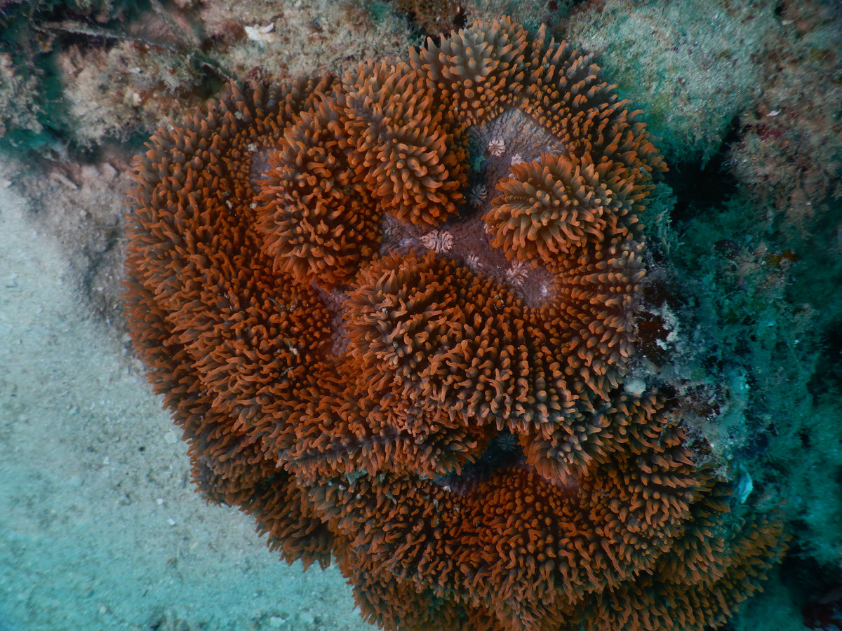 Zweiter Tauchgang war wieder eine Korallengegend, auch wieder mit reduzierter Fischmenge, aber hübscher Rifffauna und -Flora. Wir hatten beide Male den Guide nur für uns, das ist bei schlechter Sichtweite schon sehr viel praktischer. Beim zweiten Mal war auch der Welpe mit und hat sich im Freediving geübt und nach Fischen Ausschau gehalten, während wir in der Tiefe waren.
