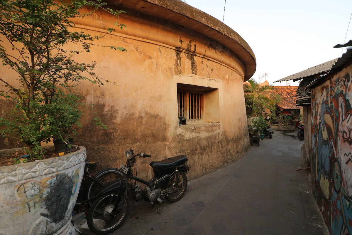 Erschreckt, dass es nach dieser Portion Müßiggang bereits 16:30 war, also etwa eine Stunde vor Sonnenuntergang(!), fuhren wir nochmal zum Wasserschloss, um in dem Altstadtirrgarten nochmal ein wenig herumzustreichen. Das war eine gute Idee, denn dieses Viertel ist wirklich sehr schnuckelig mit seinen seltsamen Wegen, die über Mauern, durch alte Tore und Unterführungen führten und manchmal in einem Wohnzimmer endeten. Viele Häuser sind recht nett hergerichtet, mit viel Grün und Wandgemälden. Einzige Problem war, dass die ganzen Souvenirverkäufer und selbsternannten Fremdenführer uns immer wieder darauf hinweisen mussten, dass das Wasserschloss schon geschlossen sei und dass wir in die falsche Richtung gingen.