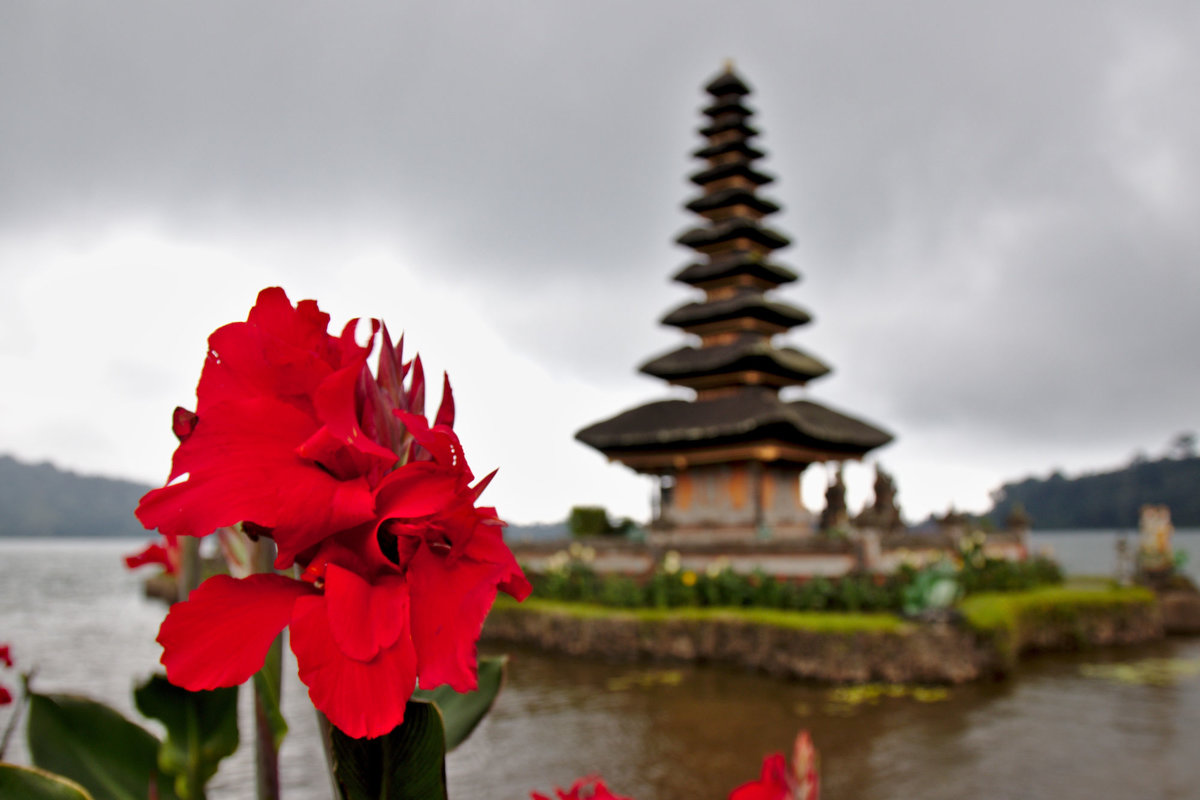 Der zweite Stop war der Ulun Danu Beratan Temple, der auf jedem Bildband über Bali auf dem Cover oder der Rückseite abgebildet ist: ein wirklich netter kleiner Tempelturm auf einer Insel in einem Kratersee und leider wieder DER Bali-Selfie-Hotspot für Indonesier und Touristen gleichsam. Und leider haben die Balinesen das Tempelgelände drum herum zu einem sterilen Garten umgebaut, wie man ihn in Kurparks oder in Disneyland findet. Das passt einfach nicht. Der ganze Ort hat wirklich Null Atmosphäre, nur ein schönes Fotomotiv. Insgesamt eine Sehenswürdigkeit über die wir ziemlich enttäuscht gewesen wären, wenn wir dafür einen Ausflug unternommen hätten, so war es aber OK und wir waren schnell wieder weiter (auch weil es dort wirklich ziemlich kalt war).