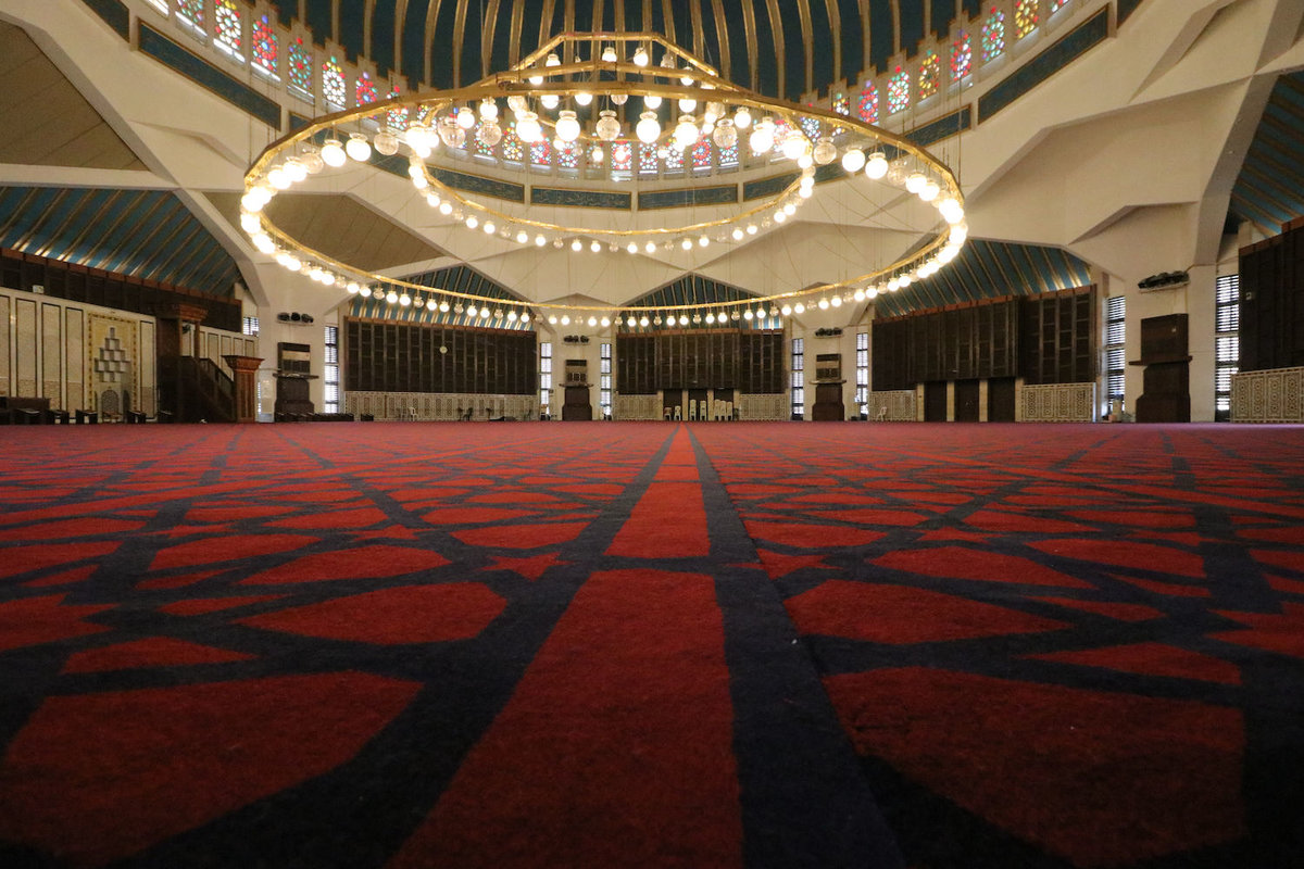 Wir haben uns also als erstes zur Zentralmoschee fahren lassen, einem ziemlich neuen und eckigen Gebäude mit schicker blauer Kuppel. Als Besucher muss man allerdings durch den Giftshop, wo die Frauen mit einem Hogwarts-Mantel versehen werden und man schonmal prophylaktisch über die tollen Kunstgegenstände gebrieft wird, die man beim Rausgehen dann gerne alle kaufen darf.