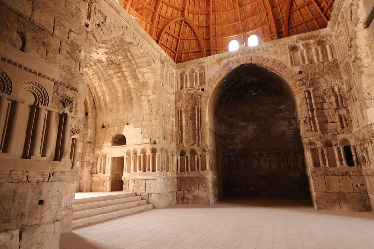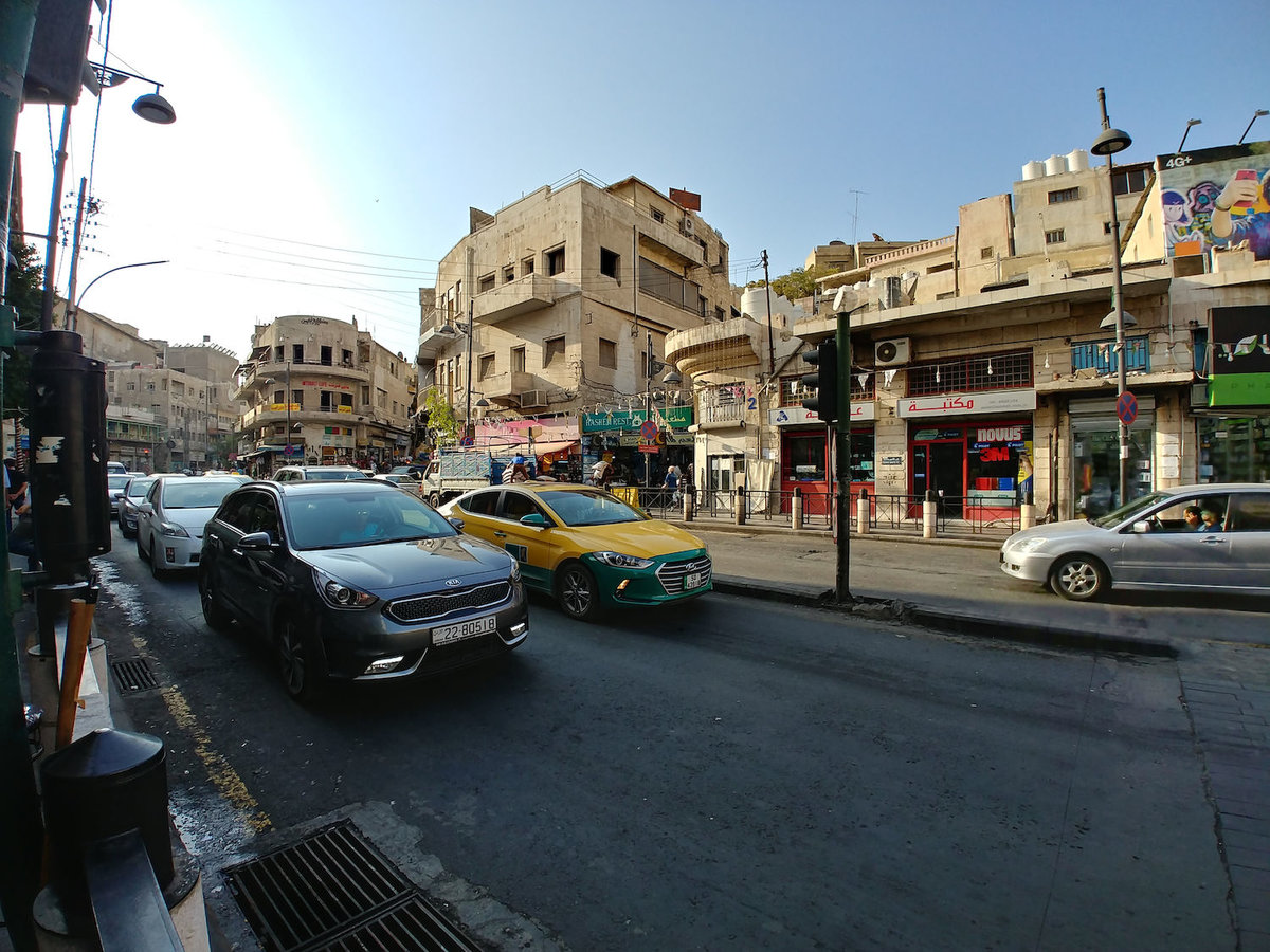 Mit einem sehr eloquenten Taxifahrer sind wir anschließend zur Ruine der Zitadelle gefahren, einem steilen Hügelberg in der Mitte der Stadt mit vielen Schichten unterschiedlicher Bauwerke von Bronzezeitgräbern über römische Tempel bis zu Ummayaden-Palästen. Alles recht interessant, aber auch sehr kaputt. Und man hat einen schönen Blick über die homogen bebauteste Stadt, die ich kenne, fast alle Gebäude sind dreistöcke Appartmentwürfel in Sandsteinfarbe.