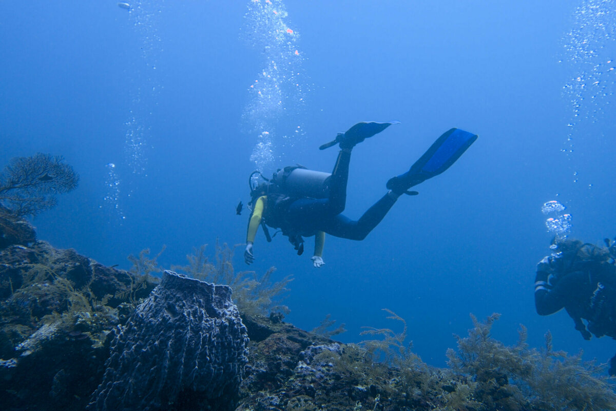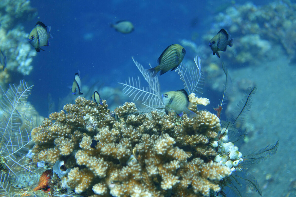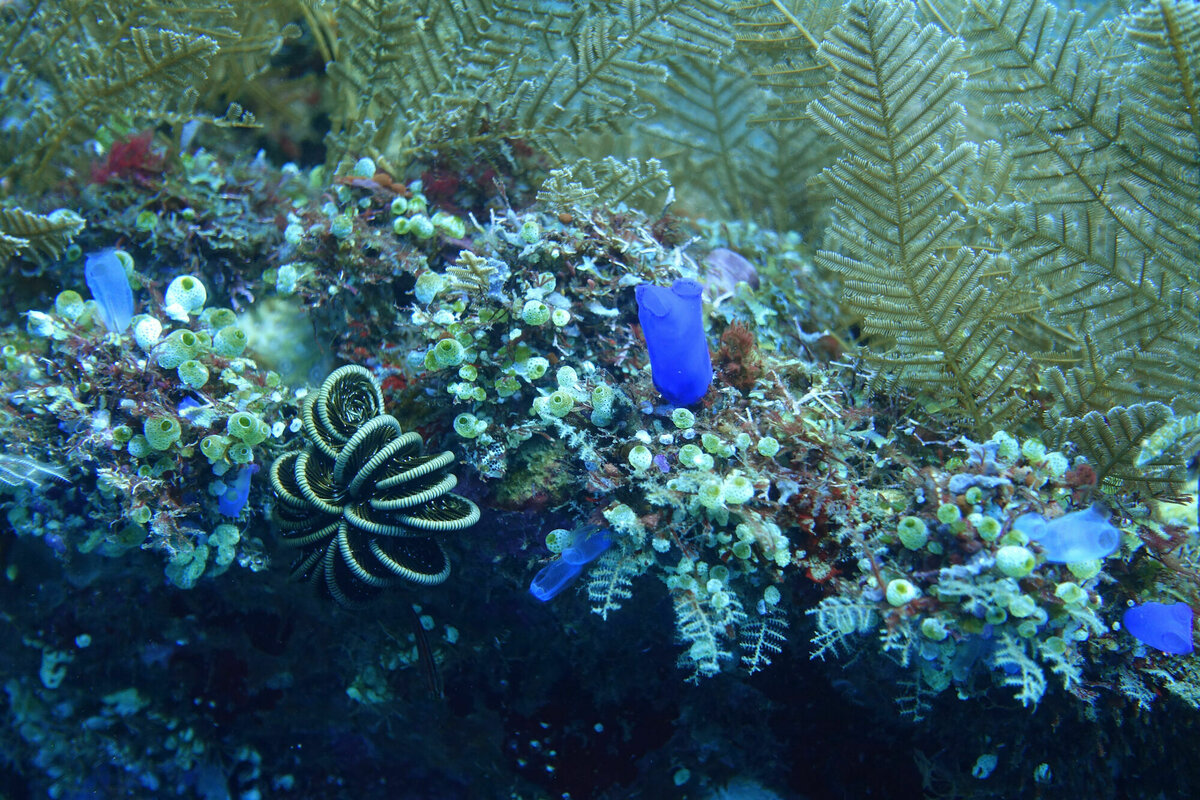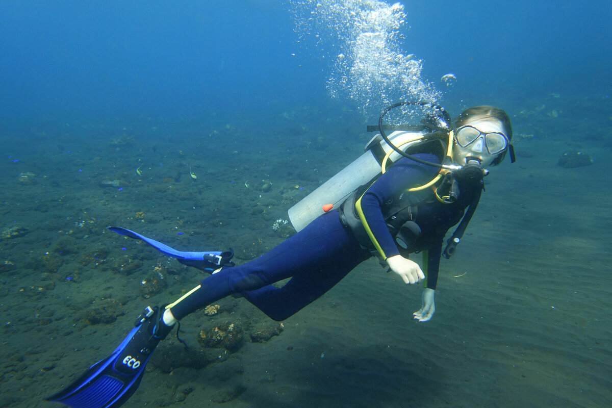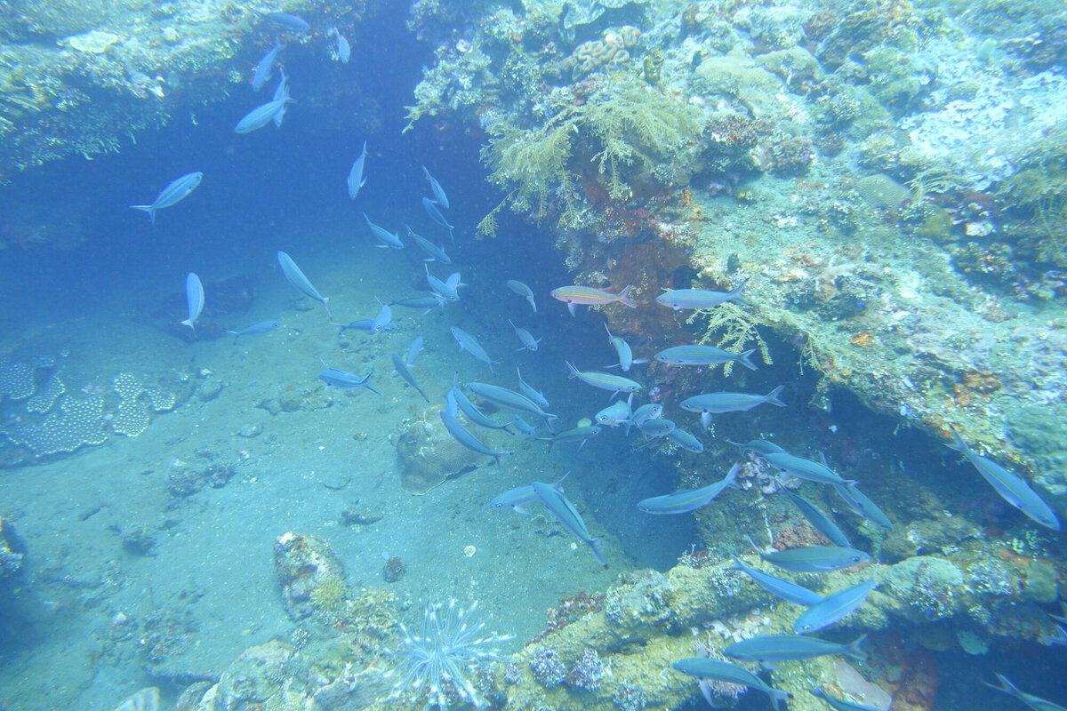 9.10.2022, Amed: So, den ganzen Airline-Quark der letzten Tage haben wir jetzt hinter uns gelassen, den Koffer haben wir geistig abgeschrieben. Esther konnte wenigstens mit geliehenem Equipment aus dem Diveshop gegen die Kälte ankämpfen, als wir heute seit 3 Jahren das erste Mal wieder getaucht haben. Der Diveshop sorgt für den Transport zum Strand, von wo aus man zum wirklichen großen, aber auch wirklich kaputten Wrack der USAT Liberty tauchen kann. Der »Strand« besteht aber aus Tennis- bis Volleyballgroßen, sehr runden Steinen, die elegant unter den Füßen wegrutschen, wenn man einbeinig da steht, um seinen Neoprenanzug anzuziehen. Ein wirklich schönes Ballett zwischen Gleichgewicht und Armerudern.