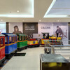 Die noch kleineren Kinder ohne Motorradführerschein fuhren auf einem permanent klingelnden Zug auf aufgeklebten Gleis durch den Laden. Die Geräuschkulisse war drinnen also ein klein wenig höher als an der vielbefahrenen Straßen draußen. Und irgendwie war die Gefahr dort von Kindern oder Zügen angefahren zu werden auch nicht geringer.