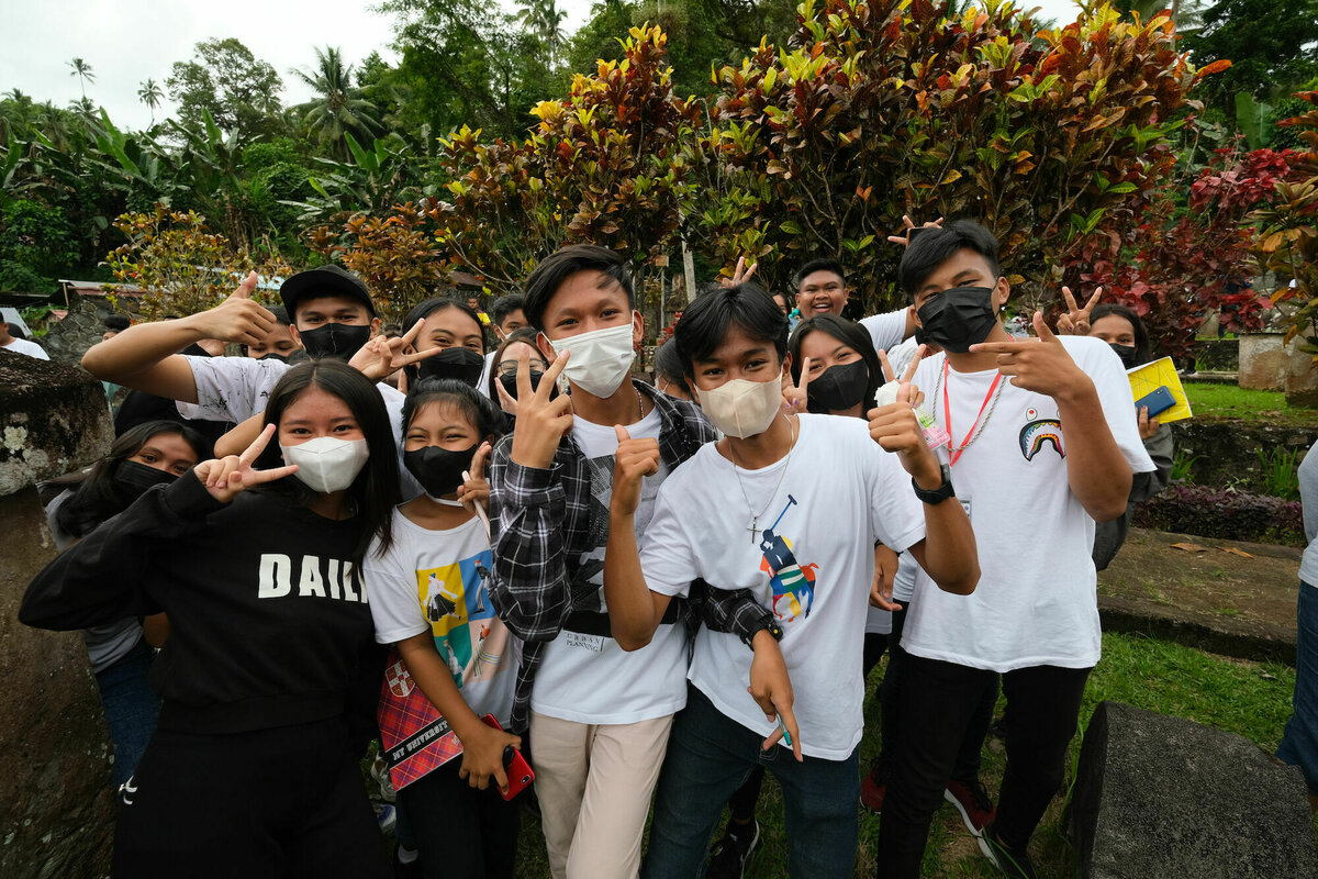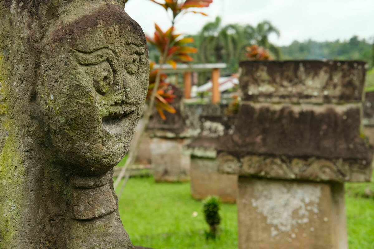 Am Friedhof angekommen, war der kleine Parkplatz überraschenderweise komplett mit Bussen vollgeparkt und eine große Menge indonesischer Schulkinder mit ihren Lehrern ergoss sich gerade auf das Gelände. Normalerweise ist das hier nicht die Hauptattraktion der Insel – und auch westliche Touris haben wir hier noch gar nicht gesehen, daher hatten wir eigentlich erwartet, komplett allein zu sein.