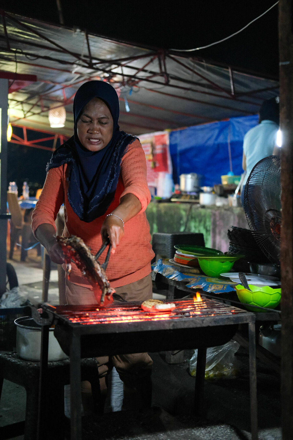 Dann ging es wieder sehr laaangsam nach Hause. Zum Abendessen haben wir uns dann nochmal an einen anderen Teil der Uferpromende bringen lassen, wo auf der einen Straßenseite ein riesiges Fischrestaurant neben dem anderen steht und sich auf der anderen Seite (der Seeseite) auf dem Bürgersteig ein kleiner Essenstand mit improvisierter Küche, ein paar Tischen und Monobloc-Stühlen an den anderen reiht. Wobei die Restaurants so extrem aus den Küchen rauchten, als würde die halbe Stadt in Brand stehen. Viel Spaß, dort mal ein Immissionsschutzgesetzt durchzusetzen!