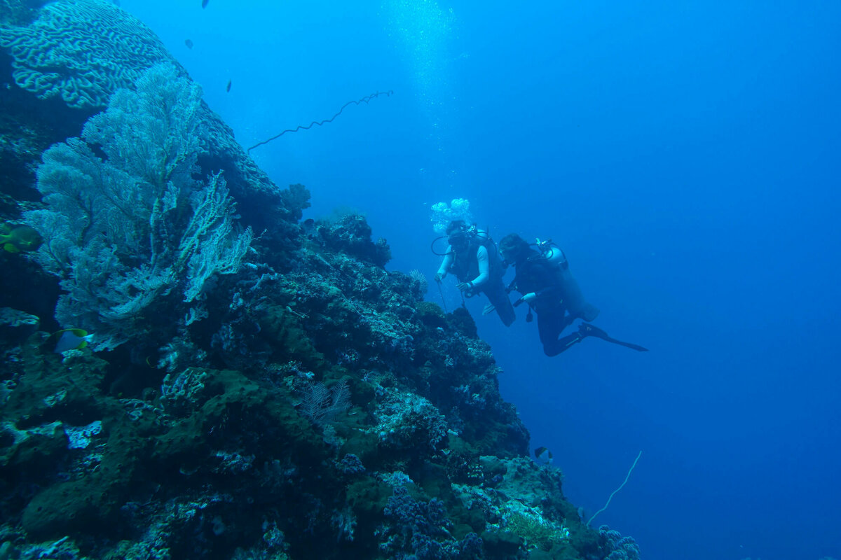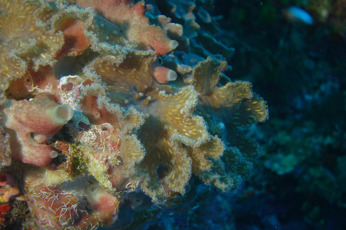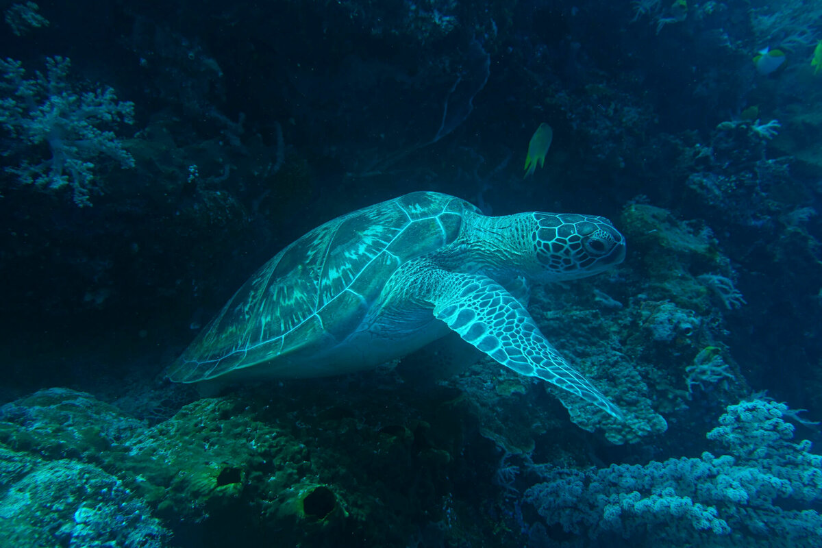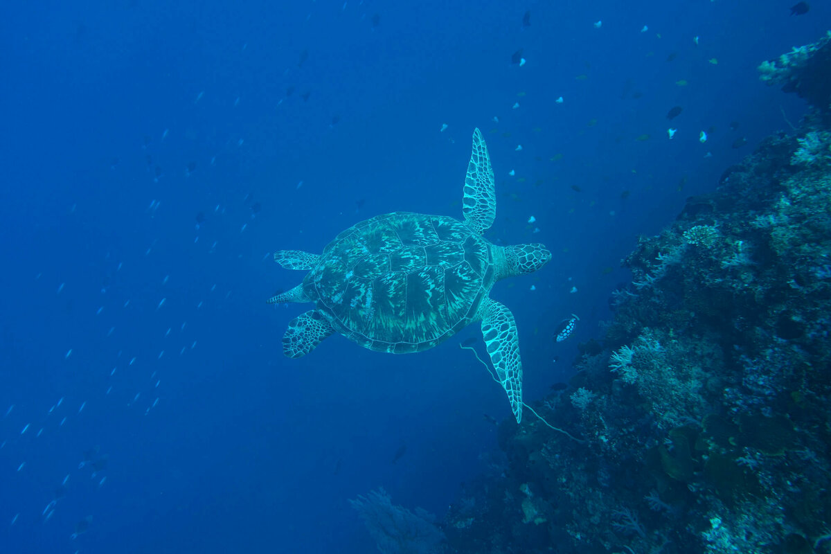 Dafür war der zweite Dive dann richtig gut: sehr schöner Korallengarten mit Steilwand, in der die Turtles jede Menge kleiner »Balkone« reingegraben haben, um hier mit Blick aufs tiefe Blau dösen zu können. Ein paar waren auch vor Ort und ließen sich entweder nicht weiter stören oder haben beschlossen, dem Trubel zu entfliehen und sich woanders hinzulegen. Wirklich ein sehr schöner ABschluss.