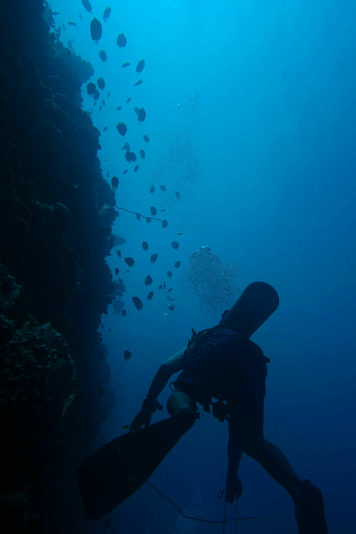 20.7.2022, Bunaken, Sulawesi: Nur ganz kurz, fürs Archiv: Zwei Dives heute vormittag, einer 40 Minuten an einer echt doofen Site: Viele durch Fischer beschädigte Korallen, eigentlich über weite Fläche ein Trümmerfeld mit sehr wenig Fischen und wenig sonstigen Sachen, dafür sehr viel Strömung, gegen die wir anschwimmen mussten. Die Luft verbrauchte sich wie nix, was aber ganz gut war.