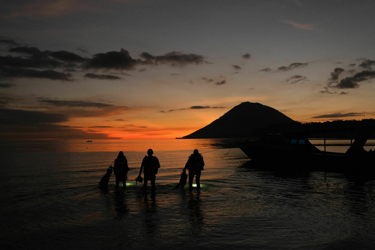 Wobei: der mittlere Hund hatte sich doch entschlossen, noch einen Nightdive zu machen und latschte also kurz nach 18 Uhr nach Sonnenuntergang ins Wasser hinaus, um gute 80 Minuten später sehr zufrieden und geflasht von den Sachen wieder aufzutauchen.