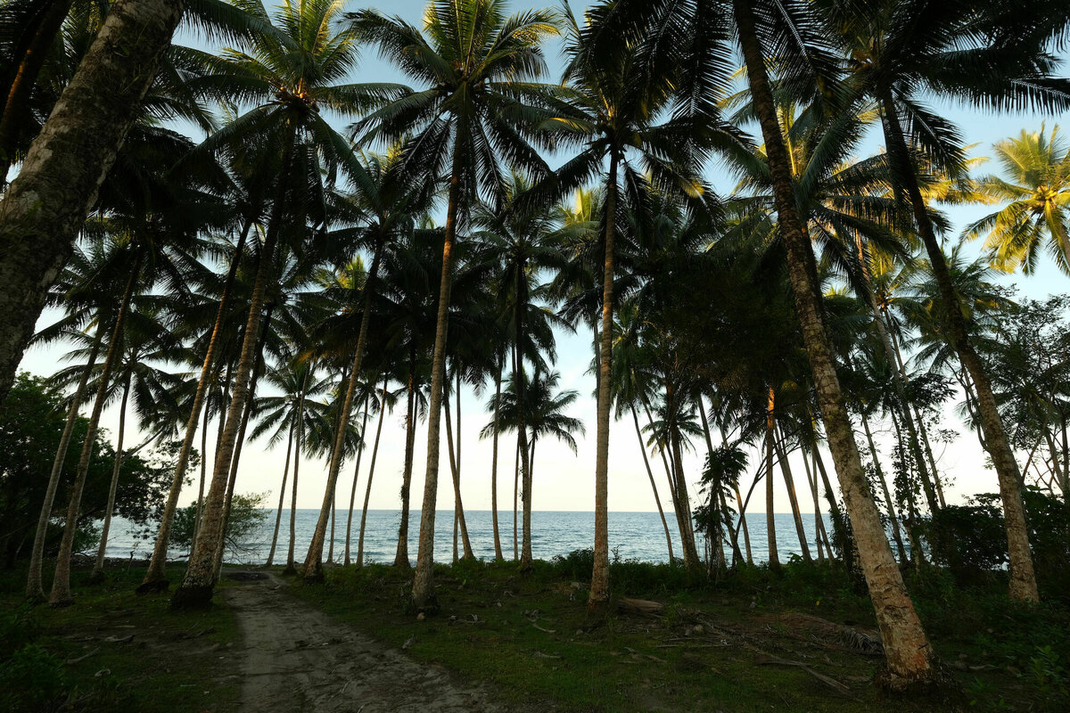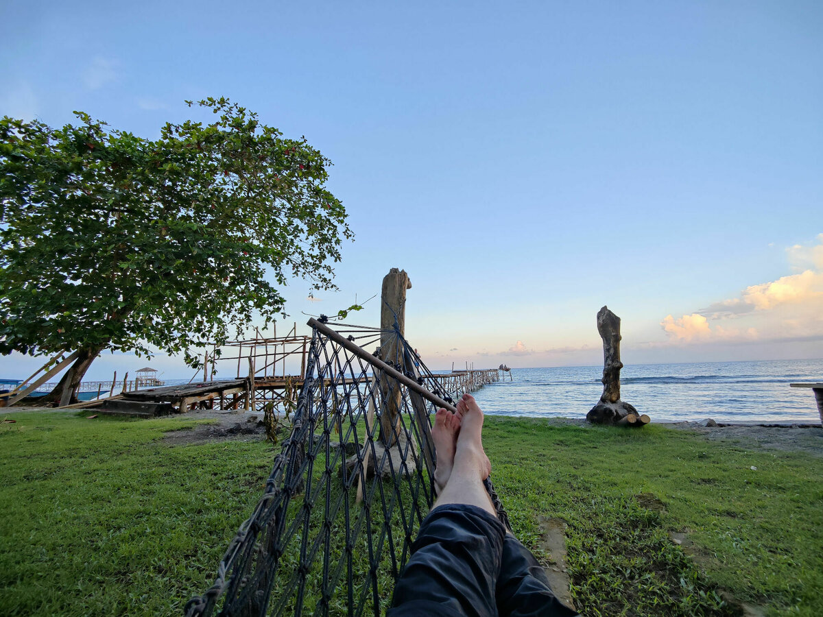 Außer Abhängen auf der Hängematte, einem gemeinsamen Abendessen und einem kurzen kleinen Spaziergang haben wir dann aber auch nichts weiter unternommen. Außer diesem kleinen Resort gibt es keine Restaurants oder Läden auf der Insel. Es gibt auch nur einen schmalen, matschigen Moped-Trampelpfad, der die einzelnen Kokosfarmer miteinander verbindet. Strom gibt es nur nachmittags bis nachts vom Generator, Internet nur bei gutem Wetter von der Nachbarinsel. Manchmal stellen die Angestellten dazu einen Hotspot zur Verfügung, der sehr schwankend funktionierte.