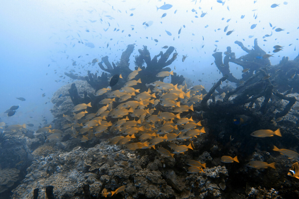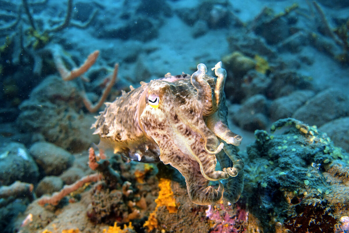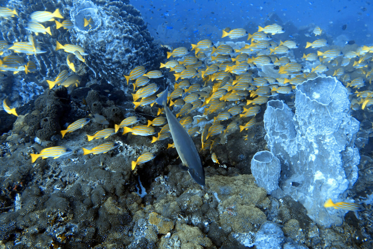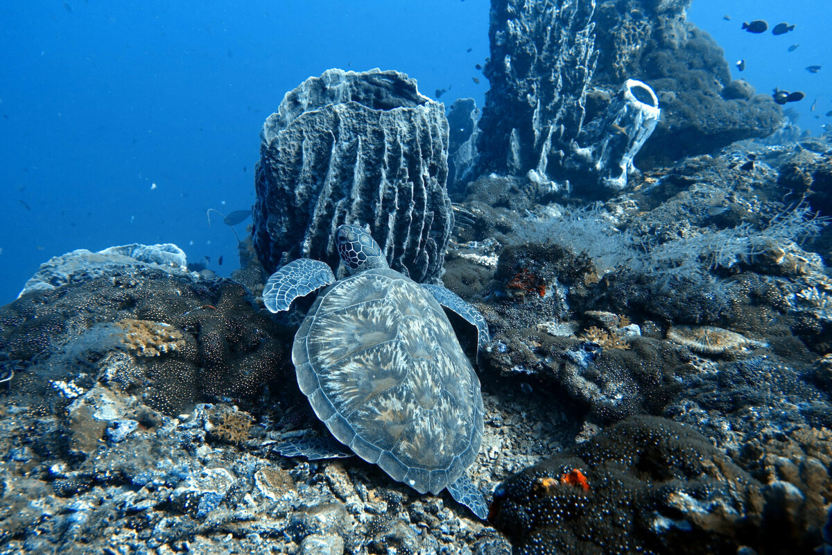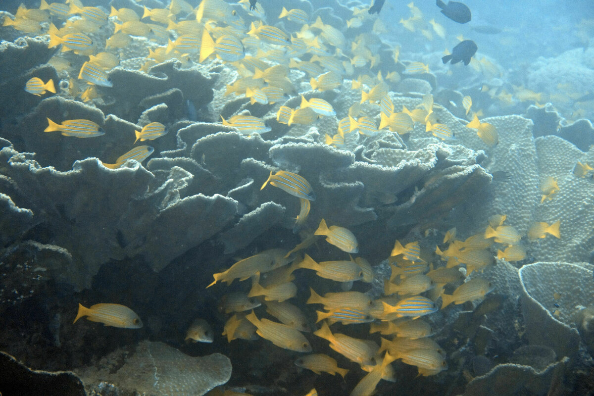 25.–27.7.2022, Una-Una, Sulawesi: Die drei Tage auf Una-Una haben wir eigentlich immer nach dem gleichen Schema verbracht: morgens nach dem Frühstück ging es mit unseren meistens etwas albernen Diveguides in einem kleinen Motorboot zu einem der erstaunlich vielen Tauchplätze, wo wir die wirklich tollen, sehr unterschiedlichen Korallenriffe mit einem wirklich tollen Reichtum an Riff-Fischen, Sepia, Barrakudas, Nudibranches, Zebrafischen, Drückerfischen, ein paar Schildkröten, einem Schwarzspitzen-Riffhai, Napoleon-Wrassen, Muränen, Clownfischen, einer Cleaning-Station mit Putzerfischen und noch sehr sehr viel mehr für das ich lange in einem Bestimmungsbuch blättern müsste, bewundern konnten. Nach einer einstündigen Pause im Resort, ging es dann zu einem zweiten Tauchgang an einer anderen Site. Nachmittags wurde buchstäblich abgehangen, auch weil es manchmal nachmittags regnete. Insgesamt ein paar wirklich schöne Tage!