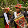 Nach einer weiteren Ansage hielt jemand dem angeleinten Büffel den Kopf hoch und schlug ihm mit einer Machete einen tiefen Schnitt in die Kehle. Das Tier sprang dann leider eine ganze Weile blutend in Panik herum, warf dabei das Reh um, stolperte, rappelte sich wieder auf und bekam vom Schlachter noch einen weiteren Schnitt verpasst. Trotz der Verletzungen dauerte es doch leider eine ganze Weile, bis es zusammenklappte und sich nicht mehr aufbäumte. Kein sehr schöner Anblick, aber das Opfern von Tieren ist für diese Zeremonie leider sehr wichtig. Bis zu 24 Büffel sind maximal pro Beerdigung erlaubt. Die Hörner werden dann an langen Säulen des Hauses präsentiert.