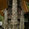 Hier übernahm jetzt ein sehr jung aussehender, aber dafür um so energischerer Zeremonienmeister das Mikro und bellte seine Geschichten in die auf 11 aufgedrehte Lautsprecheranlage. Es wurde die Tragekonstruktion vom Sarg wieder entfernt und letzterer die Rampe hoch auf den überdachten kleinen Turm gehievt.