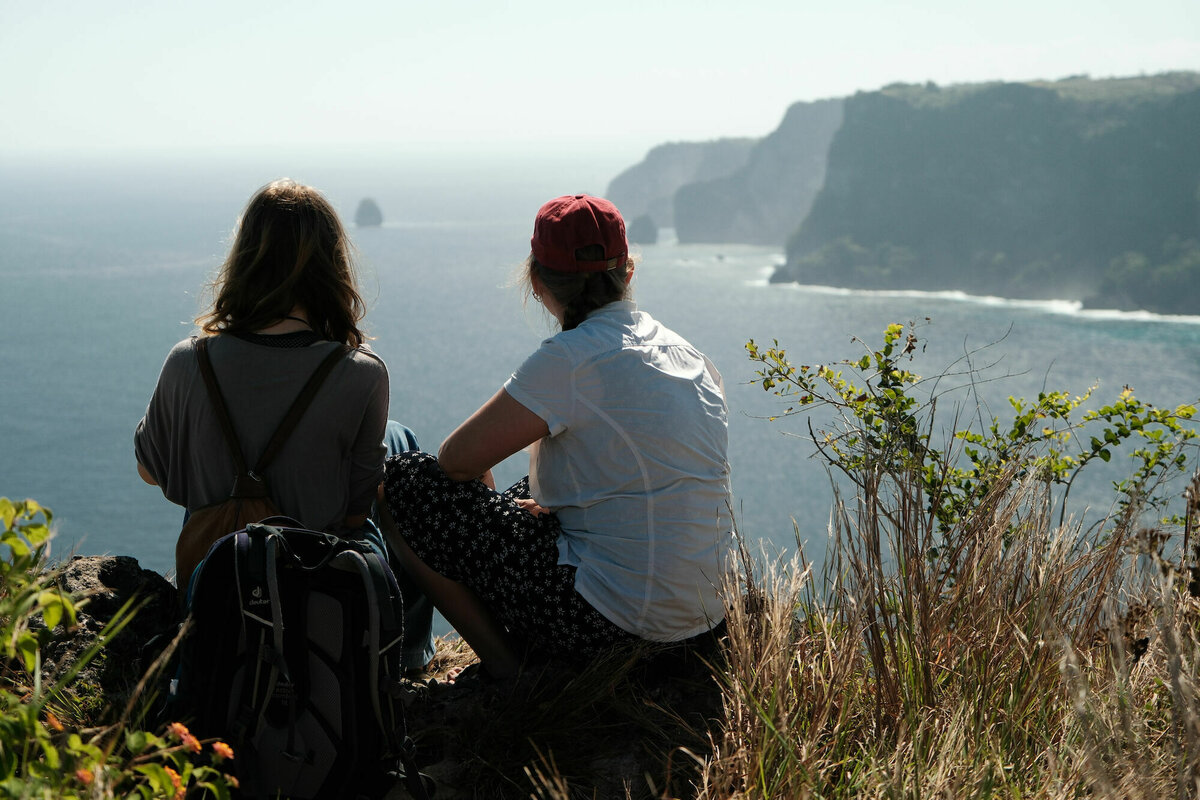 An diesem Stop waren wir komplett alleine, was ihn noch schöner machte, aber am nächsten, dem berüchtigten Insta-Spot »Kelingking Beach«, stapelten sich die Selfie-Touristen, Schnacker, Ego-Tussis, Leute, die ihre Drohnen mitten in Menschenmengen starten, die auf von tausenden Füßen blank polierte Bäume klettern, um die besten Selfies zu machen und Leute, denen es komplett egal ist, wie man in diesem Land bitte nicht außerhalb eines Strandes herumzulaufen hat. Wegen solcher Leute plant Bali teilweise schon einen kompletten Touristenstopp für Tempel.