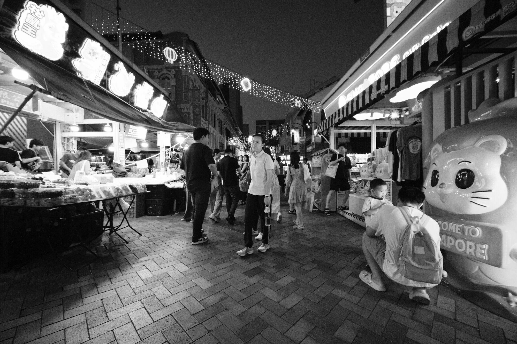 Mit ploppenden Ohren sind wir dann wieder aufs Straßenniveau, haben in Chinatown nochmal im selben Hawker-Center kalte Getränke geschlabbert (die nach der frischen Zubereitung sogar gleich verschweißt werden) und festgestellt, dass Chinatown wirklich erst nach Sonnenuntergang erwacht. Plötzlich war alles voll und lebhaft. Sesamstraßengucker wissen: Es reicht nicht nur der richige Ort, es muss auch die richtige Zeit sein.