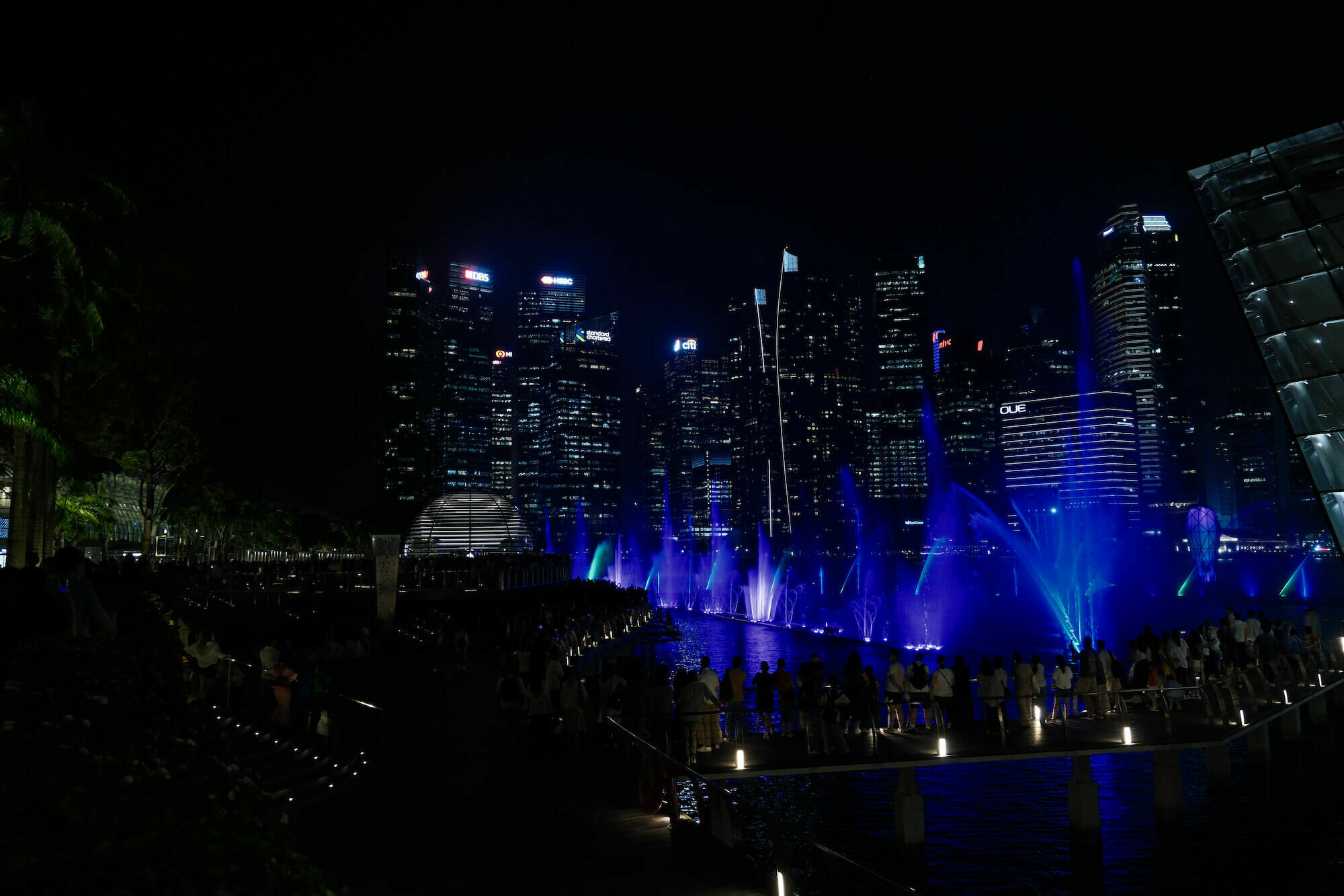 Wir sind aber mit der sauberen(!) U-Bahn zu der gigantomanischen Riesenmall Marina Bay Sands gefahren, wo wirklich keine Nobelmarke fehlt, aber dann auch ein netter, billiger und sehr geschäftiger Hawker-Center im Untergeschoss zu finden ist. (Dort haben wir den indischen Stand geleert). Auf der Seeseite gibt es abends mehrfach eine zehnminütige Wasser-Licht-und-Musik-Show, die die spektakuläre Wolkenkratzer-Skyline von Singapore als Hintergrund hat. Alles hier ist riesig, alles edel, alles vom Feinsten. Kein Bauwerk ohne einen speziellen Twist, sogar die Fußgängerbrücke zur anderen Seite der Bucht ist der DNA nachempfunden und hat CGATGCCTAGCT-Sequenzen am Boden (Nils darf hier jetzt gerne erklären, warum meine hier erfundene Sequenz so nicht funktioniert).