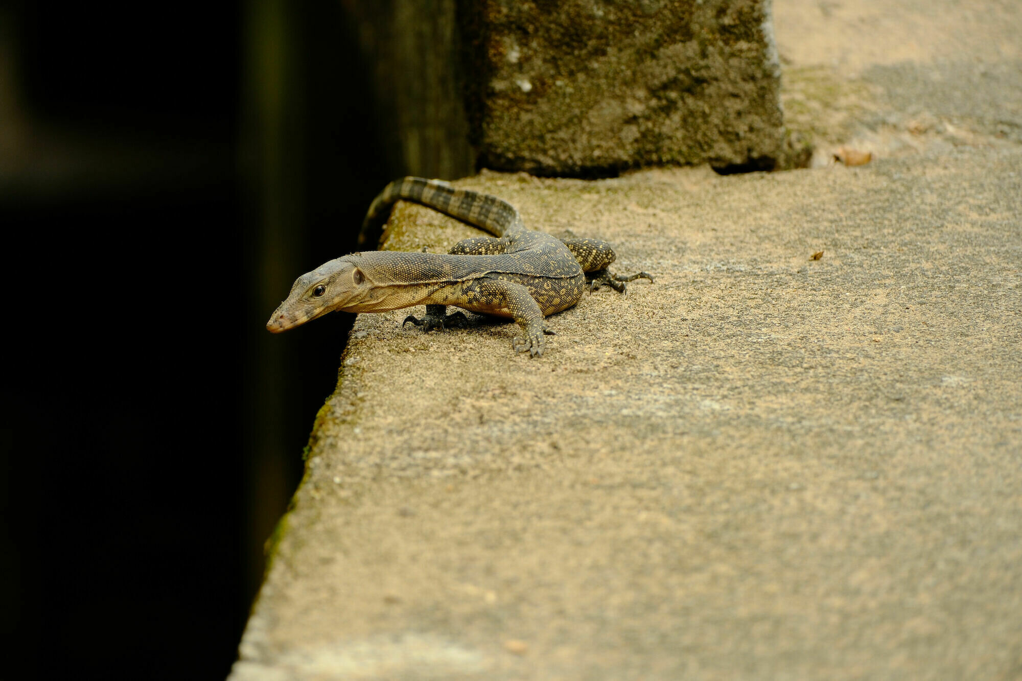 Wir haben irgendwo Eistees und Nudeln zu Mittag gefuttert, die Divebay kurz besucht und haben dann in einem anderen Laden zu Abend gegessen. Nett war, dass es hier im Dorf an der einzigen festen Straße eine kleine Brücke über einen Bach gibt, in dem wir mehrmals große und kleine Monitor-Lizards gesehen haben. Vielleicht war aber auch ein Keyboard-Lizard darunter.
